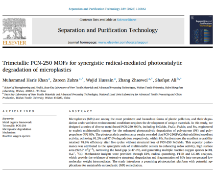 近日,我院生物医学工程与健康学院2024级留学生Muhammad Haris Khan以第一作者身份,在国际顶级学术期刊《Separation and Purificat...