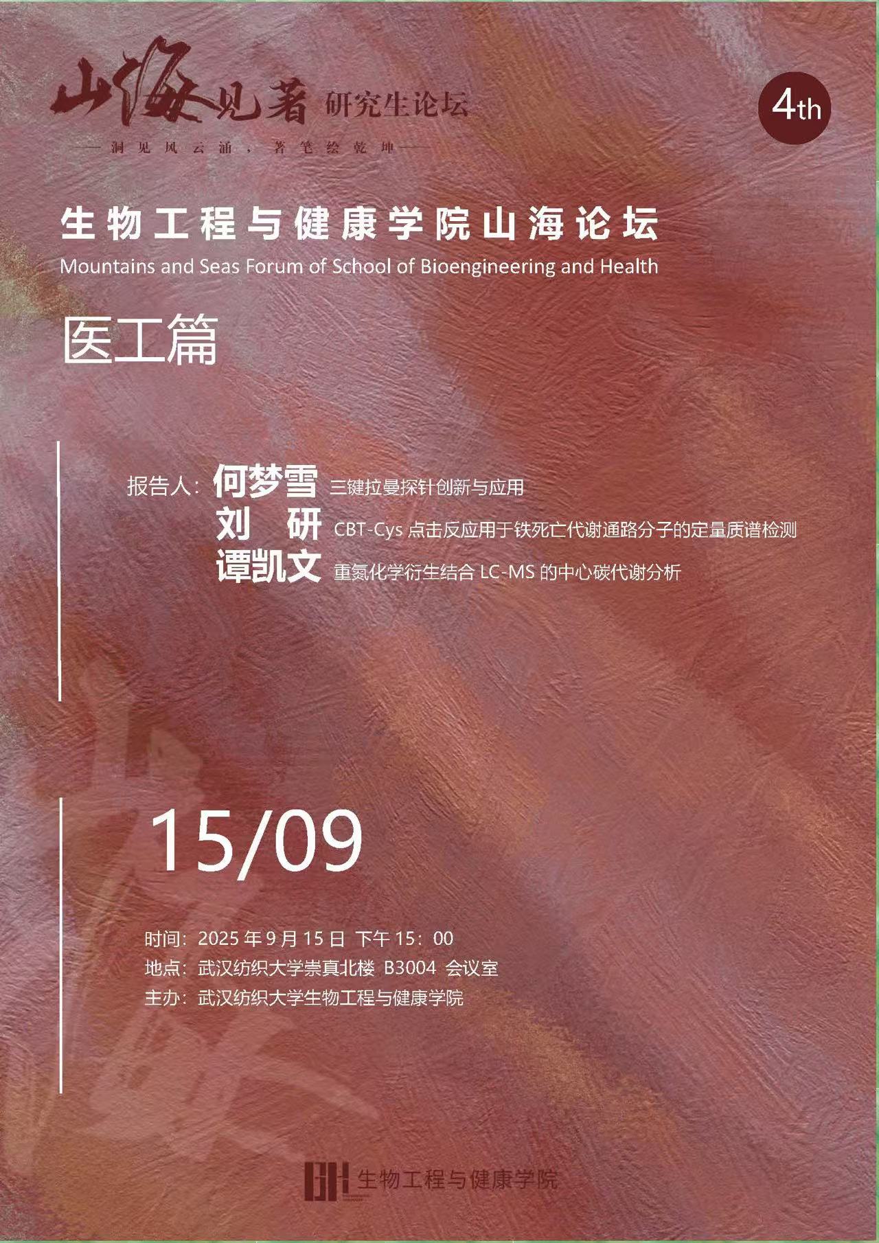 9月15日下午,武汉纺织大学生物工程与健康学院研究生论坛在崇真北楼B3004会议室顺利召开。何梦雪、刘研、谭凯文三位研究生围绕生物检测与分析技术,以各自研究方向落脚,带来了他们的成果分享。