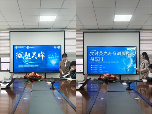 竞赛现场,各参赛团队依次登台路演,围绕项目核心技术、市场前景、商业模式及社会价值展开精彩阐述。从“膜上显塑”NC膜微塑料可视化速测系统、“精准塑鉴”微塑料一站式快检体系,到“丝基如春”蚕丝基复合膜、“腕间健康管家”智能穿戴设备等,涵盖环境监测、生物材料、医疗健康等多个前沿领域。评委老师们认真聆听汇报,从技术创新性、商业可行性、团队执行力等维度进行细致点评与专业指导,为项目优化提升提出宝贵建议。